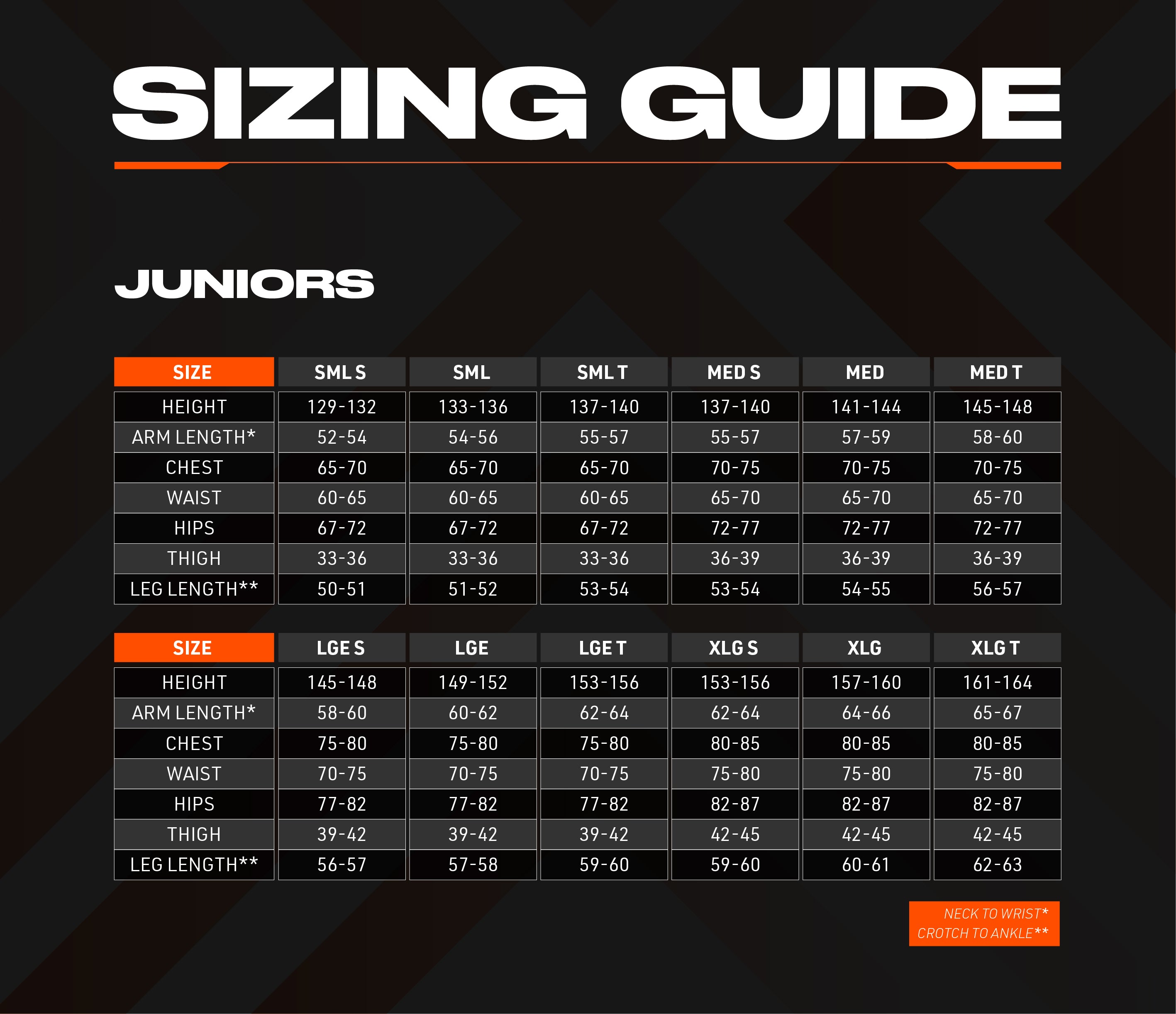 Größentabelle für Junioren